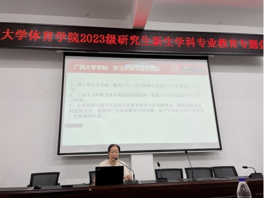 9月12日上午,太阳成tyc234cc全体研究生导师及2023级研究生新生在网球中心一楼召开了2023级研究生新生学科专业教育专题会。本次会议召开的目的,主要是为了让学生加深对专业的了解,快速适应研究生阶段的学习,提升我院研究生的培养水平,为社会培养更多具有扎实的体育基础理论,较强的解决实际问题的能力,可以独立承担体育专业技术或管理工作的高层次应用型体育专门人才。