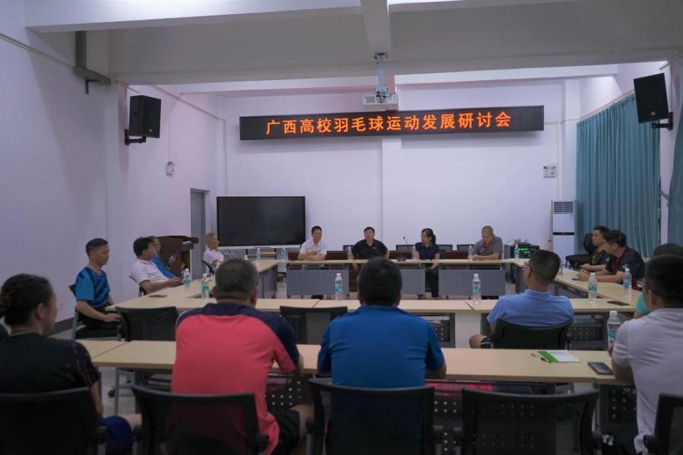 7月22日上午,由广西壮族自治区教育厅主办的“广西高校羽毛球运动发展研讨会”在我校网球中心会议室举行,来自自治区教育厅和全区16所高校的领导、羽毛球教练参加会议。研讨会上,与会人员对广西高校的羽毛球运动发展现状展开了热烈讨论;充分肯定了近年来各高校在以羽毛球运动带动体育事业发展中所取得的成绩;还就如何进一步落实国务院的全民建身计划、推动高校体育事业发展、加强高校羽毛球运动的交流等方面提出了建设性的意见。