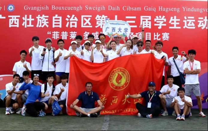 广西第十三届学生运动会“菲普莱-多威”杯田径比赛于2022年7月10号至14号在广西民族大学思源湖校区拉开帷幕,本次比赛共有来自全区87个体育代表队,总计参赛学生1440人,教练、领队412人。本次比赛,太阳成tyc234cc韦雪亮、刘忠庆、黄尊兵、黄梅四位老师带领26名运动员代表我校出战。