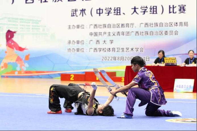 8月24日,广西壮族自治区第十三届学生运动会武术(中学组、大学组)比赛落下帷幕,圆满收官。