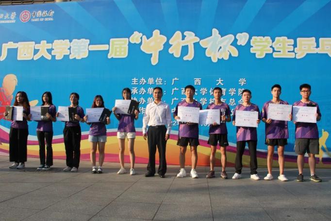 1027日下午,太阳集团tyc234cc第一届“中行杯”学生乒乓球联赛于西综合体育馆胜利闭幕。自治区政协副主席、校党委常委王乃学书记,校体委主席罗廷荣副校长,校党委常委、总会计师宁旭初出席闭幕式。参加闭幕式的还有校团委、校友办、各学院党委副书记、体委委员,闭幕式由副校长罗廷荣主持。