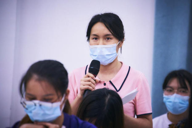 王丽老师讲到,中国共产党已经走过百年,如今站在第二个一百年的新征程上,我们面临着诸多机遇与挑战。回首2019年的疫情、20年的全面建成小康社会、21年的百岁大党、22年的北京冬奥会,无不体现出中国特色社会主义的先进性,中国共产党党员的团结一致、众志成城的精神。有一句话说得好,“打铁必须自身硬”,我认为每一位党员都应有这样的精神,在工作中强化自身的能力素质,做好时代的建设者。同时,党员同志们要做到两点:第一,不断学习,与时俱进。作为教师,应当探索更加符合新时代培育“五有领军人才”的育人方式;做好体育竞技的传送者,让更多学生站上更高的领奖台;做好学生服务工作,倾听学生的心声,做好学生的领路人。第二,再次出发,集中力量办大事,师生作为学院与学校的主体,我们应当站在新的起点上,抒写新的奋斗篇章,当代中国青年是与新时代同向同行、共同前进的一代,生逢盛世,肩负重任,一起建设、发达壮美广西。