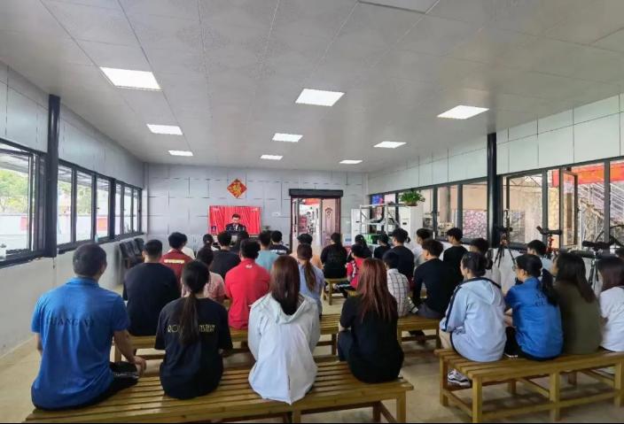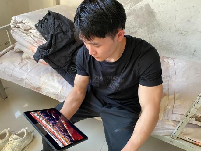 2019级学生乐云关在江南训练基地观看党的二十大开幕会直播的照片