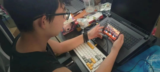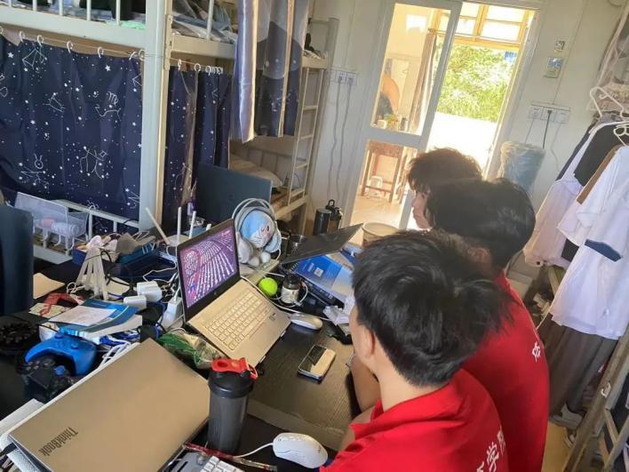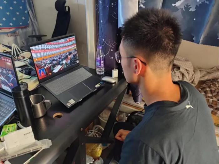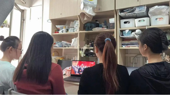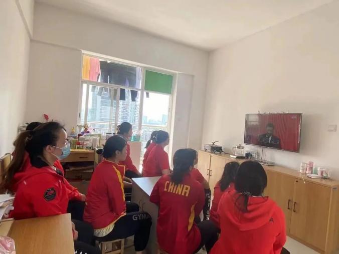 2022级学生举重运动发展中心黄芳与队友一起观看党的二十大直播