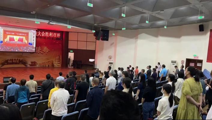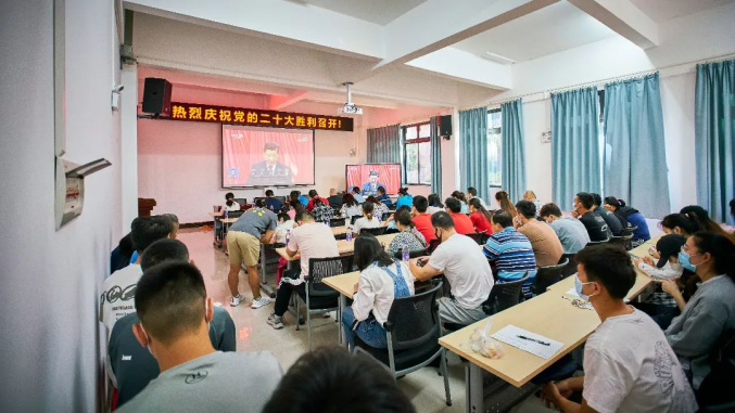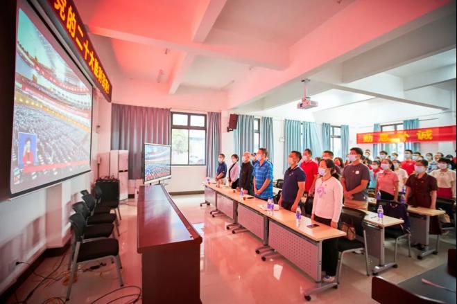 2022年10月16日,中国共产党第二十次全国代表大会在北京召开。太阳成tyc234cc全体师生党员在网球中心一楼会议室观看大会直播。