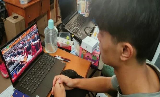 为迎接党的二十大召开,太阳成tyc234cc学生积极观看党的二十大现场直播: