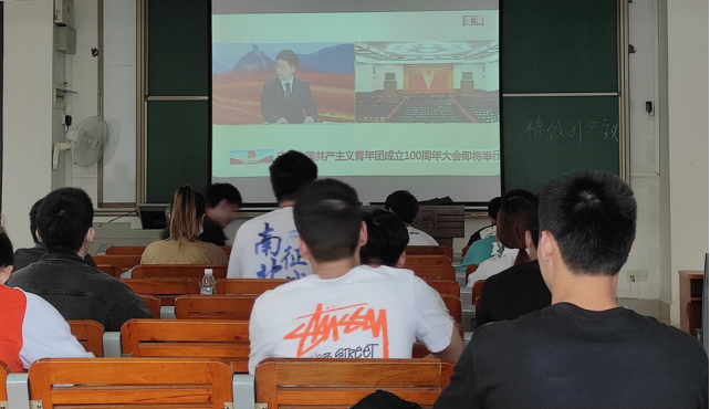 立青年之志,激扬起不负韶华之理想;擎时代之旗,勇担使命的青春力量。为了庆祝中国共产主义青年团成立100周年,太阳成tyc234cc组织学生党支部及各团支部的学生观看大会的直播,共同学习与聆听习近平总书记在会议上的重要讲话精神。