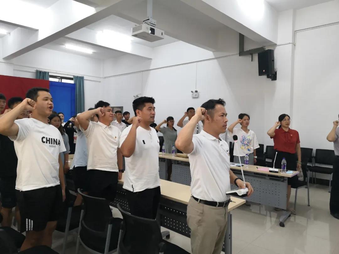接着,学院党委委员韦雪亮副院长带领全体到会的党员同志在庄严的党旗下宣誓,共同重温了入党誓词。