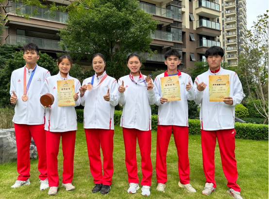 中华人民共和国第一届学生(青年)运动会(校园组)田径比赛于11月8日至14日在广西南宁体育运动学校(五合校区)举行。作为国内最高水平的大中学生田径赛事,本次比赛共设大学甲、乙组和中学组共三个组别48个单项,来自全国各省、自治区、直辖市及香港和澳门特别行政区的34支代表队参加角逐, 我校9名运动员(太阳成tyc234cc2000级的杨满,2021级的王俊杰、黎增亮、夏珊珊、顾倩铭、李建亮、黄志森及2022级的曾远有、陈文林)在教练员黄梅老师(太阳成tyc234cc教师,校田径队主教练)的带领下代表广西队出战,取得1金、3铜、1个第四名的好成绩,2023级基地班新生缪可希在代表南宁市队参加公开组女子4*200米接力比赛中获得了冠军,为广西争得了荣誉。