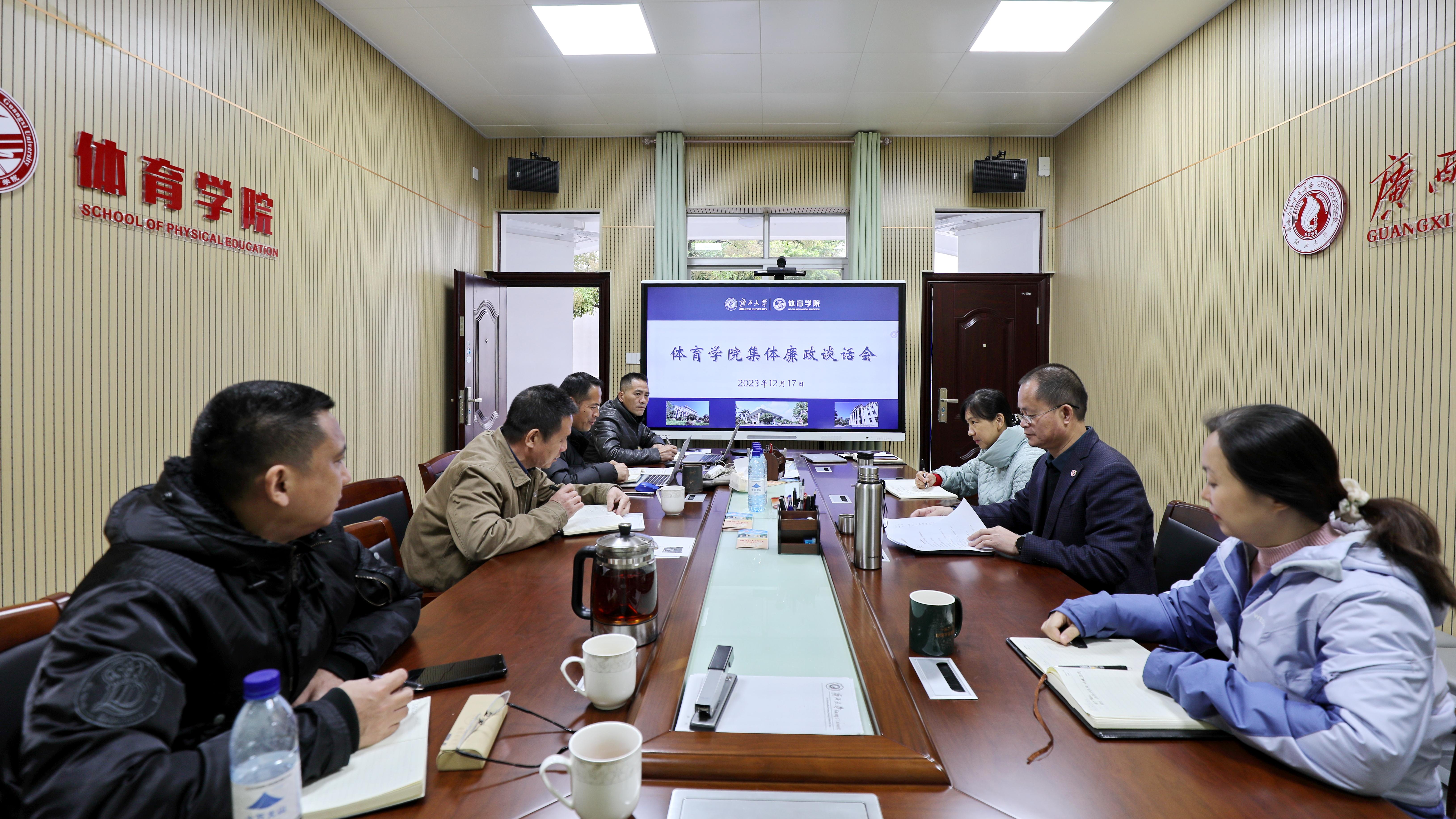 12月17日,院党委在学院二楼会议室召开集体廉政谈话会,院党委书记覃安基主持会议,学院领导班子全体成员参加会议。