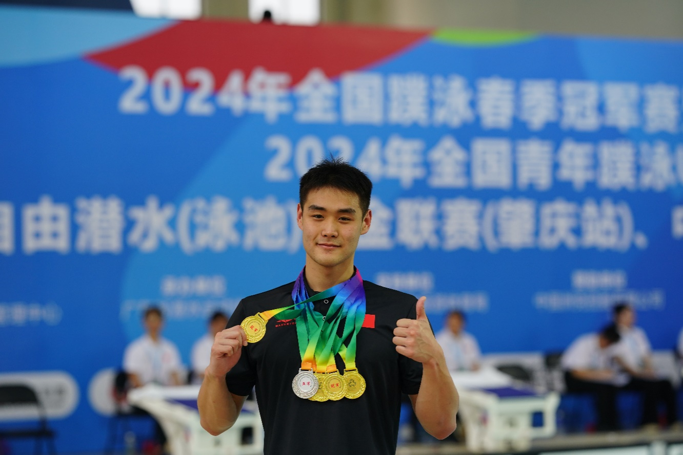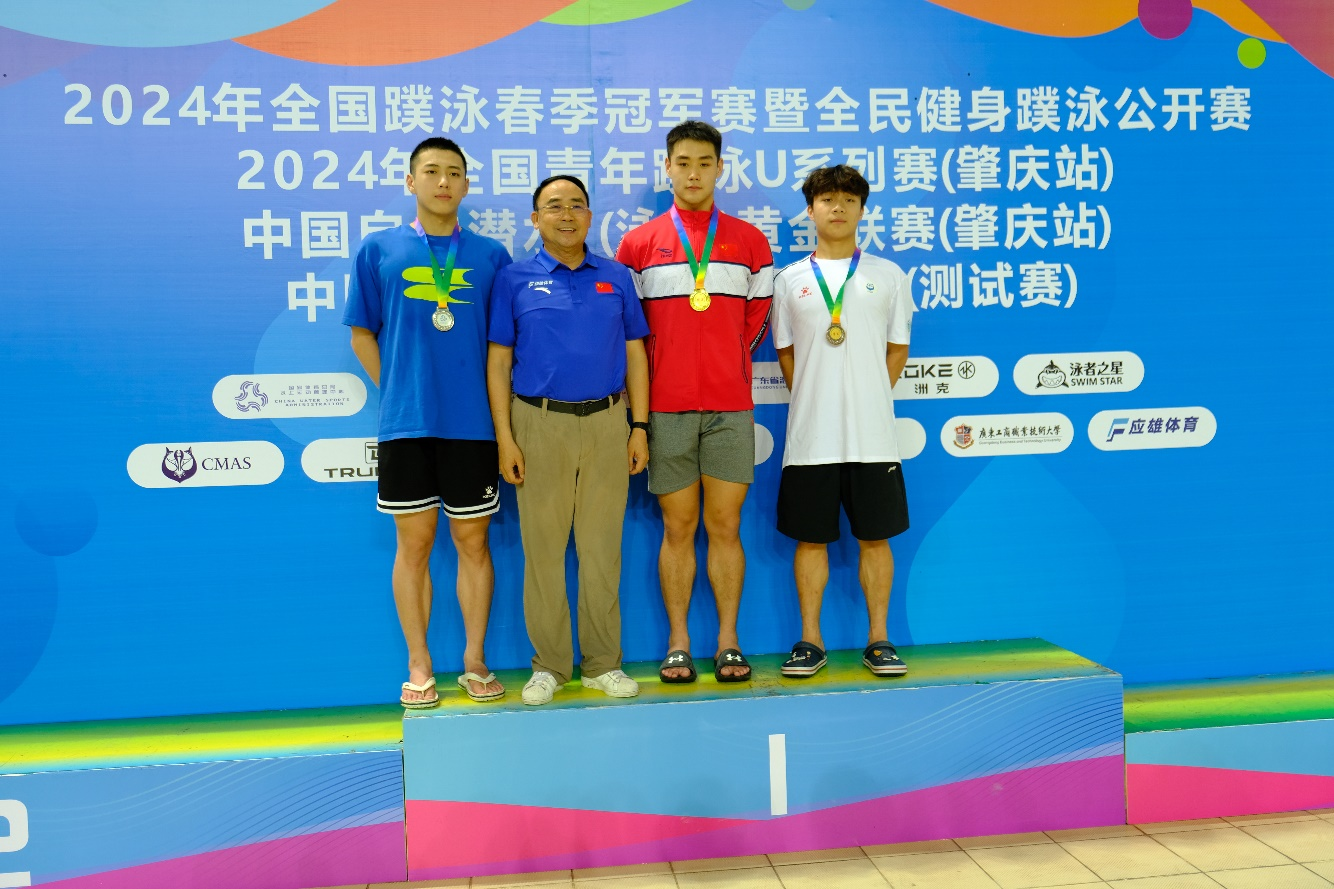 4月20日,在广东肇庆举行的2024年全国蹼泳春季冠军赛男子200m器泳项目比赛中,我院运动训练专业2023级关涵之同学以1′14″08的成绩打破世界记录!