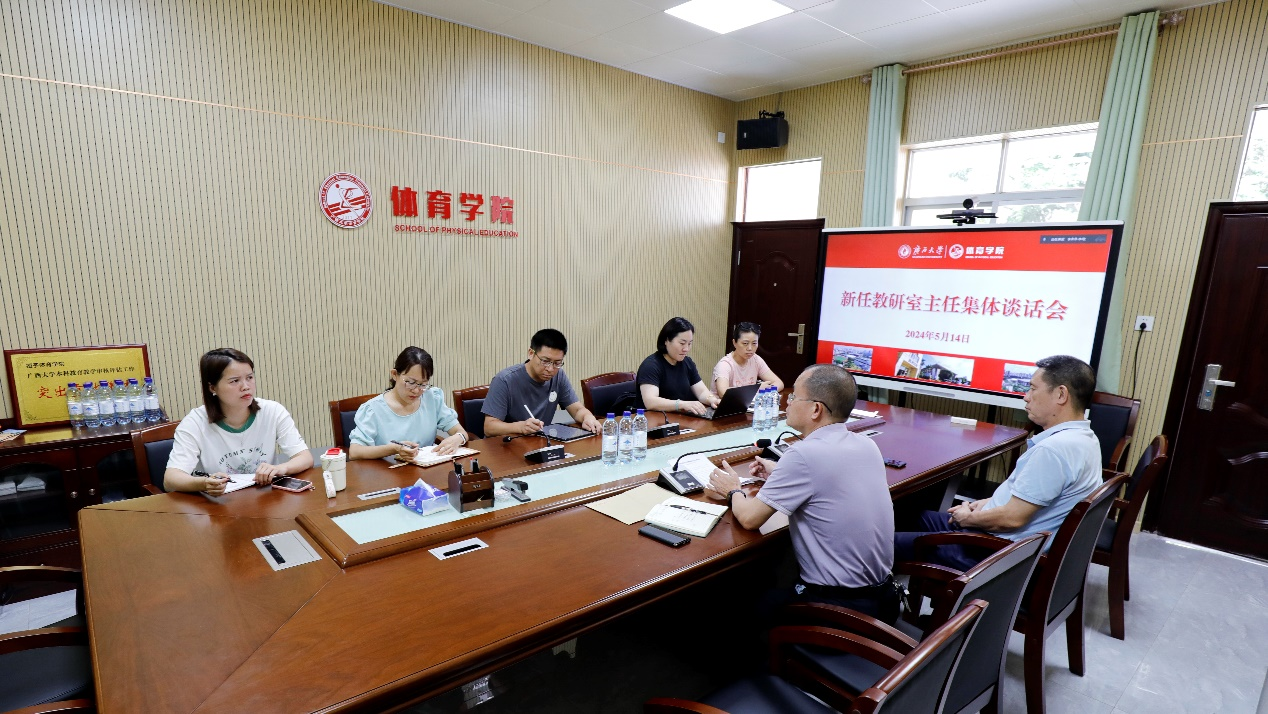 2024年5月14日,新任教研室主任集体谈话会在学院二楼会议室召开,院党委书记覃安基主持会议并讲话,院长黄小波出席会议。
