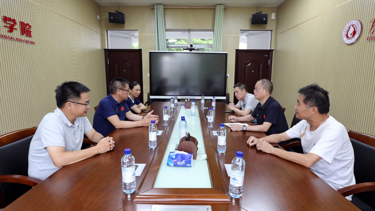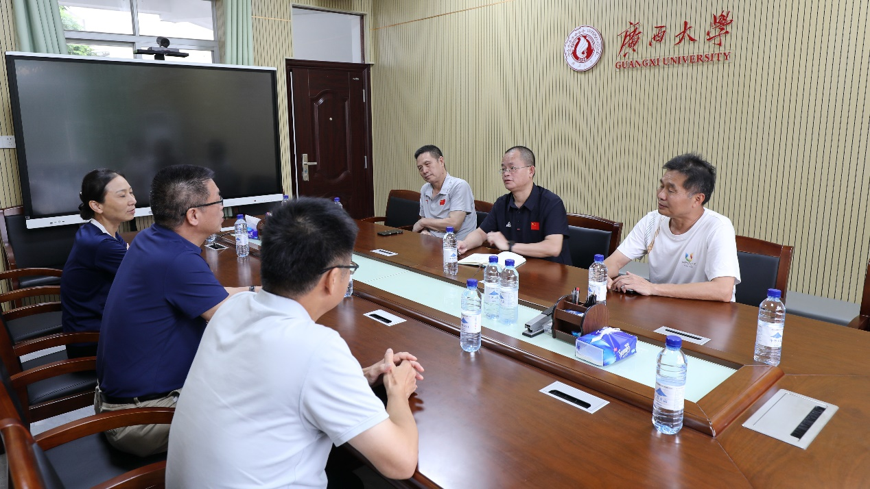 5月16日下午,自治区体育局青秀山训练基地主任黄志平一行3人到我院开展调研,院党委书记覃安基、院长黄小波等热情迎接,宾主双方围绕人才培养、项目合作等事项进行了深入交流。