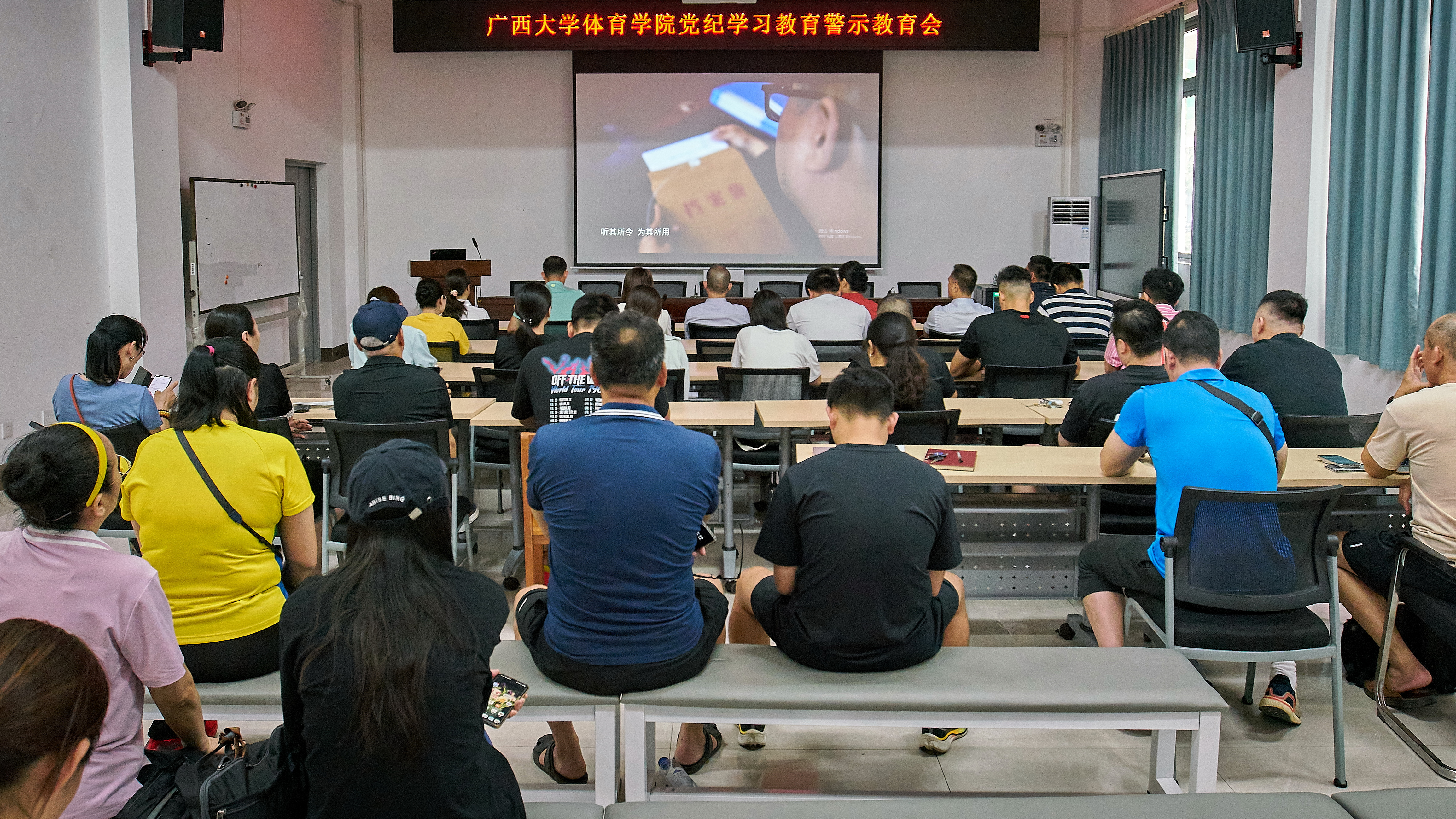 2024年6月4日下午,院党委组织全体党员教职工在网球中心报告厅开展党纪学习教育警示教育会,集中观看警示教育系列专题片,旨在通过集体观看典型案例,加强党纪学习教育和廉洁教育,引导学院全体党员干部以案为鉴、以案明纪、以案促改,坚定理想信念,筑牢拒腐防变的思想防线。院党委副书记王丽主持会议。