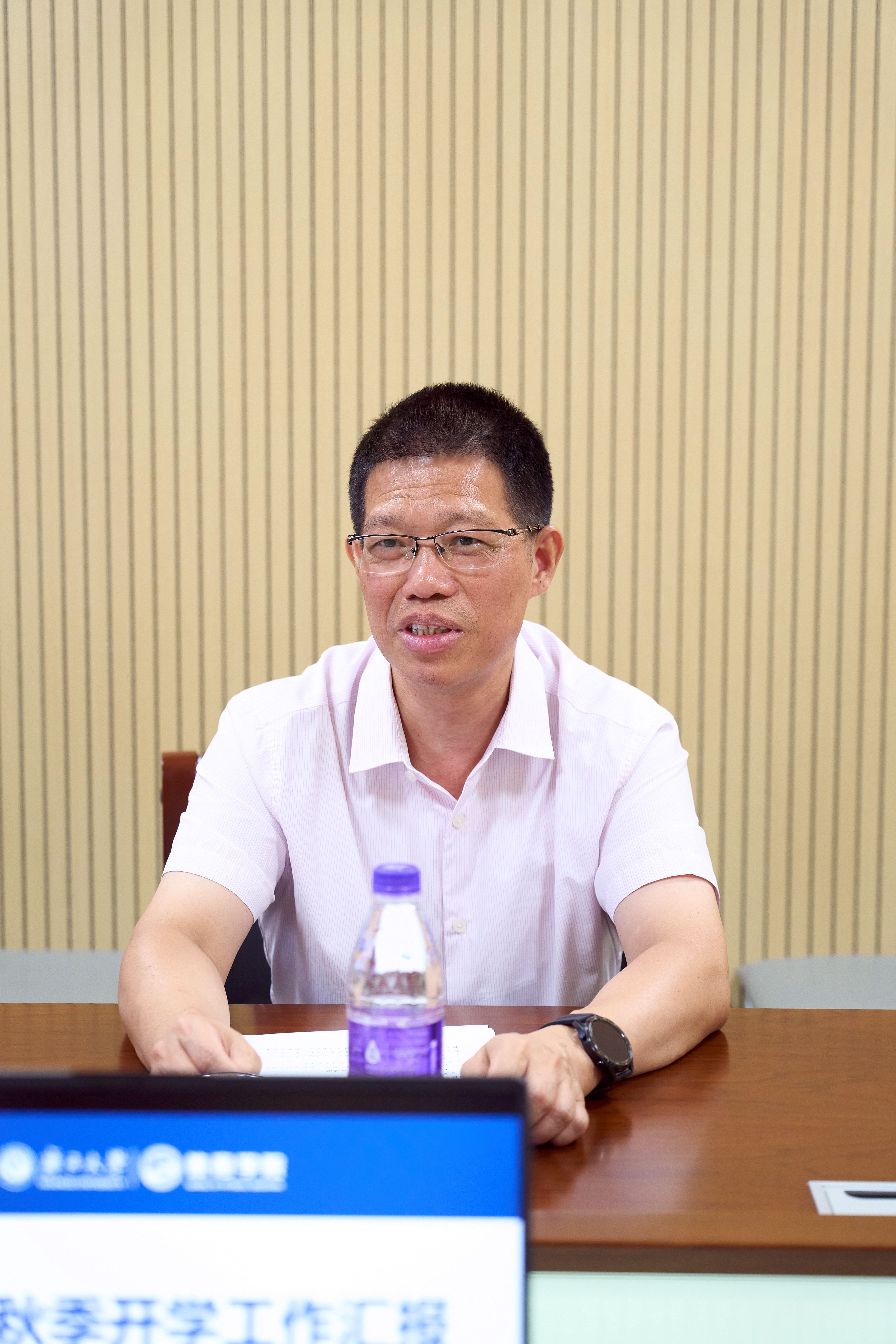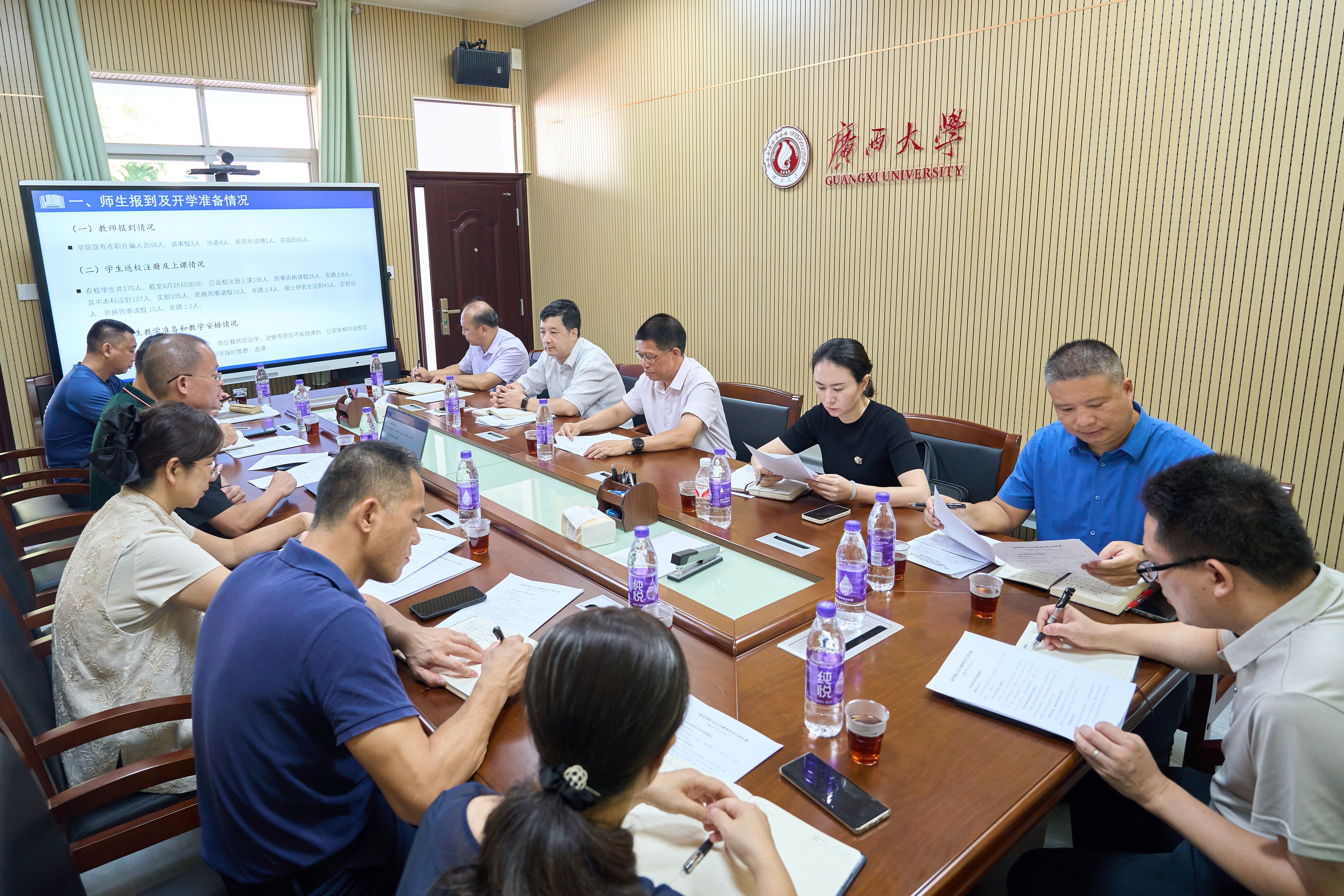 为确保新学期开学各项工作平稳有序开展,8月26日上午,学校党委常委、副校长宁旭初率队深入我院检查指导工作,党委书记覃安基带领学院党政班子全体成员热情迎接了检查组一行,并作工作汇报。