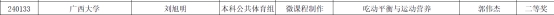 8月16日,第一届广西壮族自治区体育教师信息化教学应用大赛圆满落幕,我院教师表现出色,荣获本科体育专业组一等奖2项、二等奖2项,他们是:黄梅老师的多媒体课件作品《力量素质及其训练》、杨凝祺和伍尚柏老师合作制作的微课作品《运动后肌肉酸痛的解决方法》双双荣获一等奖,刘旭明老师的微课作品《吃动平衡与运动营养》和李秉健老师的微课作品《羽毛球正手击高远球》双双荣获二等奖。