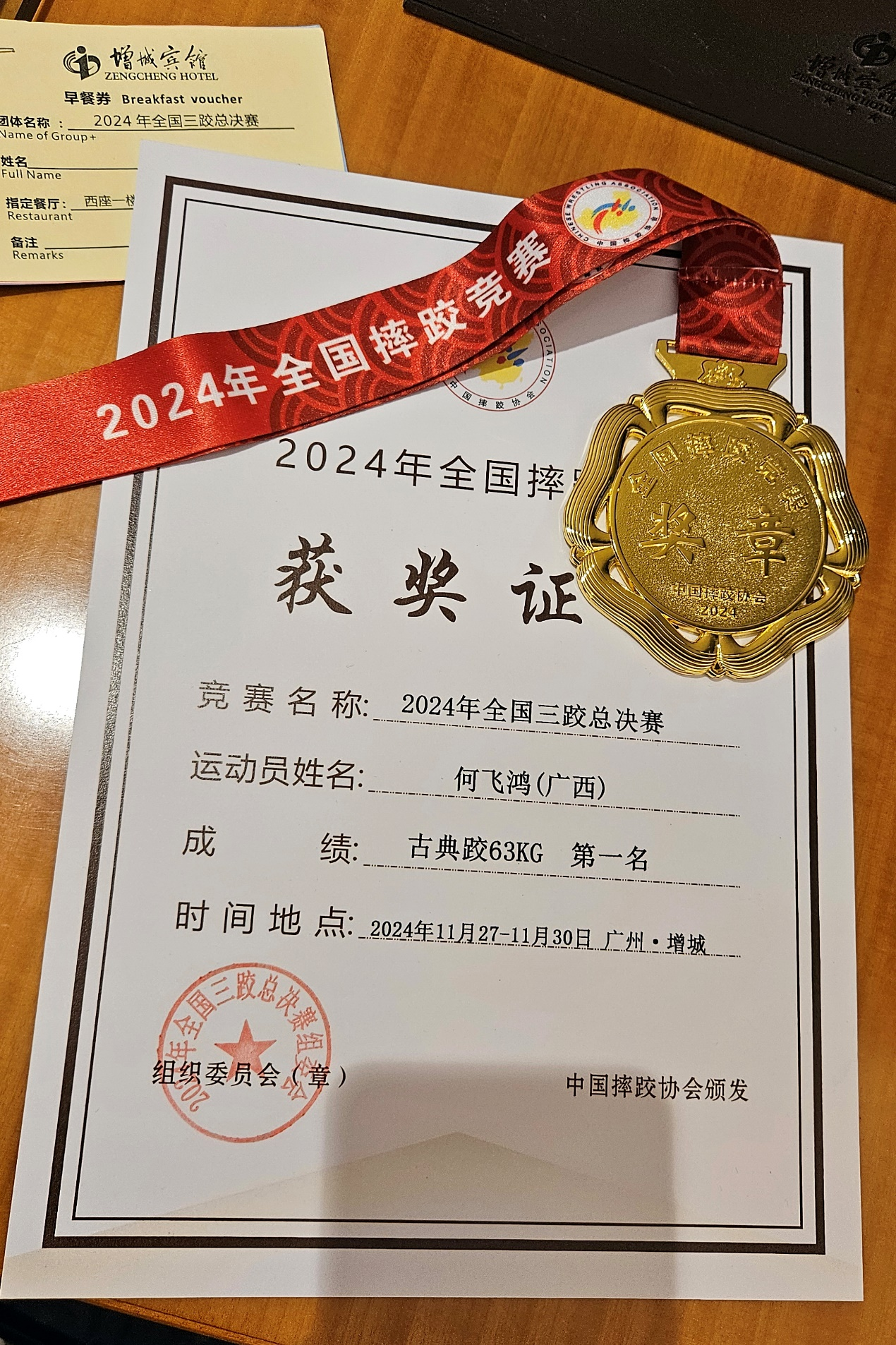 2024年11月27至30日,由国家体育总局举重摔跤柔道运动管理中心主办的2024年全国三跤总决赛在广州市增城区举行,我院2023级本科生玉华年、2024级研究生何飞鸿代表广西摔跤队出战,分别夺得60KG级、63KG级冠军,为广西争得荣誉。
