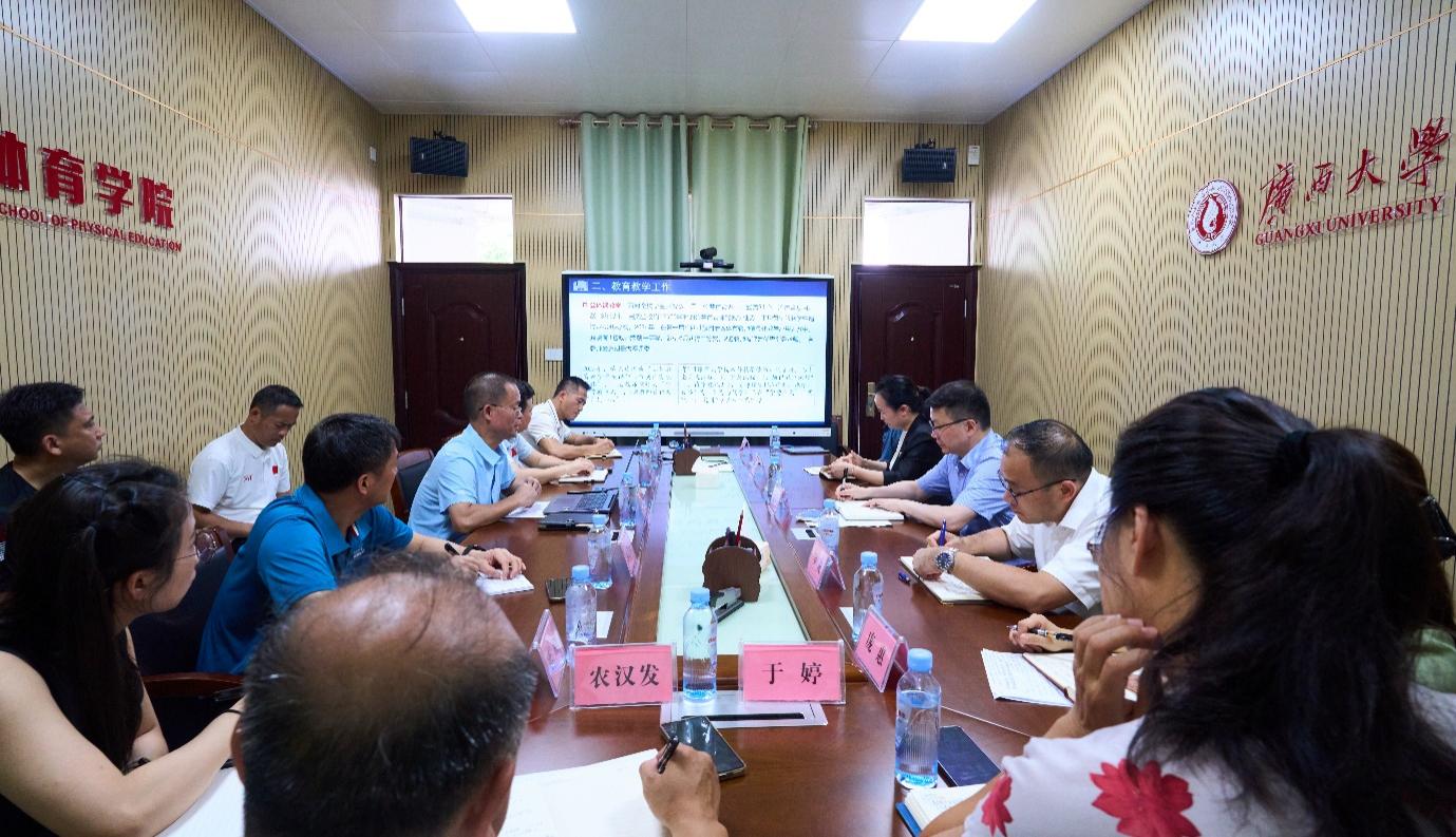 6月6日上午,校党委常委、副校长赵双良在党办校办、校务督查办,人资处,发规处,教务处,研究生院,后勤基建处,资产公司等部门领导陪同下,到我院现场办公,转达了校党委书记李国忠同志对太阳成tyc234cc的工作批示。院党委书记覃安基围绕“十四五”规划落实、“十五五”规划编制、学科建设、教育教学、人才引进、体育场所管理、有关体育赛事承办等情况,以及下一步工作思路和计划向赵双良副校长做了汇报,各部门领导结合汇报中涉及的问题逐一作了回应,并提出工作建议。