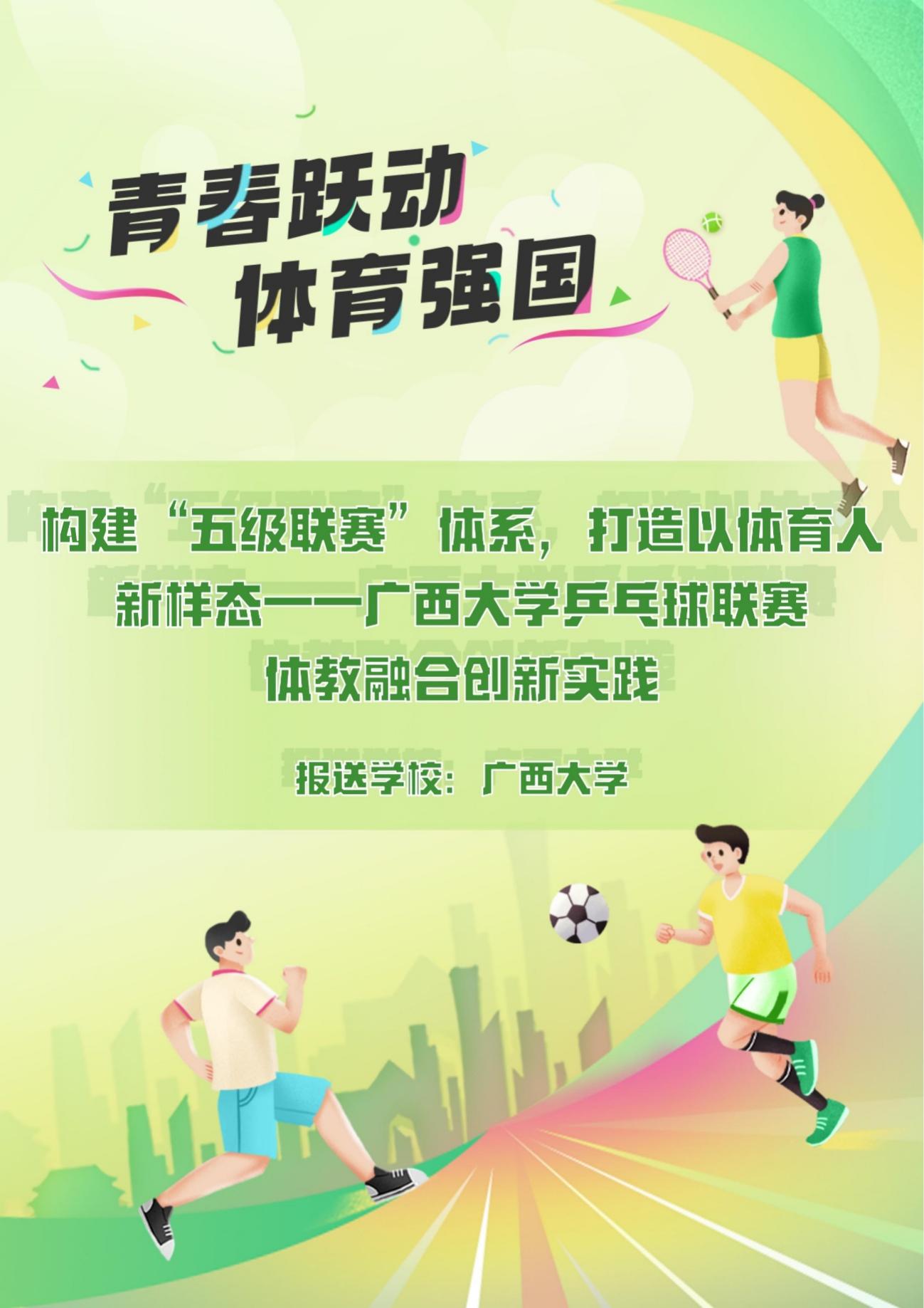 由教育部体育卫生与艺术教育司、教育部全国高等学校体育教学指导委员会指导,教育部宣传教育中心主办,北京体育大学、中国地质大学(北京)与“人民网+”客户端共同承办的“青春跃动 体育强国”高校体育风采视频和典型案例征集展示活动近日公布评选结果,教育部在全国各省区市选送的275件视频作品、152件典型案例作品中遴选出100个视频作品及50个典型案例,并于9月10日起在“人民网+”客户端、人民日报少年客户端集中展示。我院推送的《太阳集团tyc234cc啦啦操文化》视频作品和《构建“五级联赛”体系,打造以体育人新样态——太阳集团tyc234cc乒乓球联赛体教融合创新实践》典型案例作品双双入围,可喜可贺!