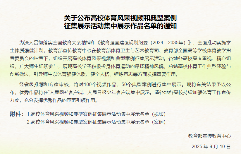 我院在教育部“青春跃动 体育强国”高校体育风采视频和典型案例征集展示活动获得佳绩(2025-09-11)