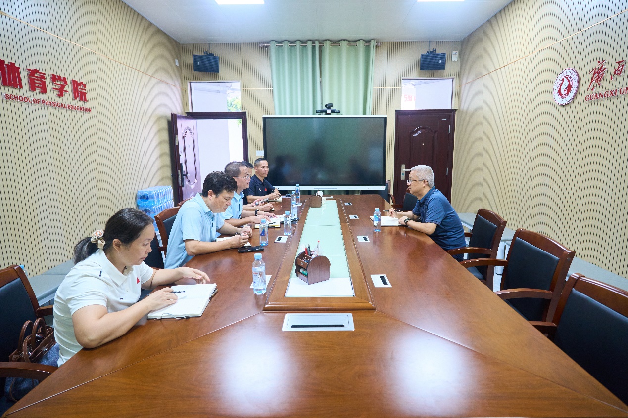 座谈会前,汤志华在覃安基等陪同下实地考察了东校园、北校园和西校园的体育场馆设施,对场馆的使用和维护工作作了指示、提了要求。