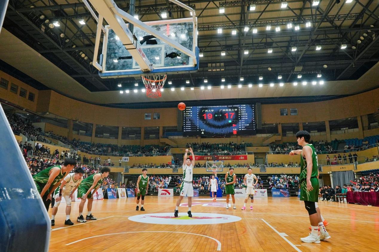 在12月30日决赛首回合比赛中,我校男篮在西校园综合体育馆主场迎战广西师大男篮,凭借全场稳定出色的发挥,最终以93:76击败对手。此场比赛吸引了全校四千余名师生到场观战,现场气氛热烈,助威声、欢呼声此伏彼起,声势浩大。赛前及节间休息时,精彩的啦啦操表演、舞龙舞狮助兴以及互动抽奖环节,一次次点燃全场热情,充分展现了我校学子团结向上的精神风貌。