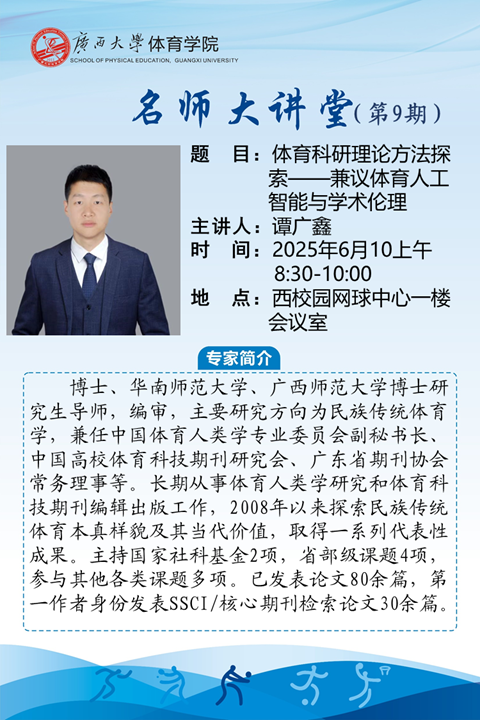 太阳成tyc234cc名师大讲堂(第9期):体育科研理论方法探索——兼议体育人工智能与学术伦理