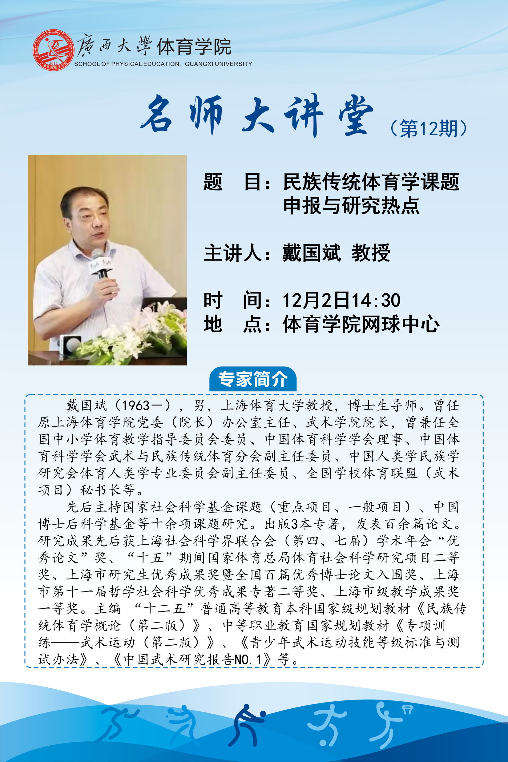 太阳成tyc234cc名师大讲堂(第12期):民族传统体育学课题申报与研究热点